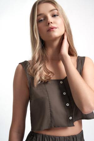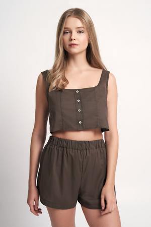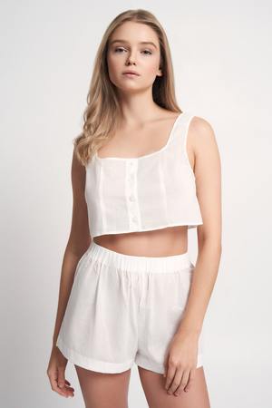 This itty bitty number is meant to be seen. Forget the bra and just throw this bad boy on for a who me?, I woke up like this look. Sleeveless Square neckline Mother of pearl button up front Cropped slightly above the waist Pair with our: Easy Breezy Short Handmade in Washington
