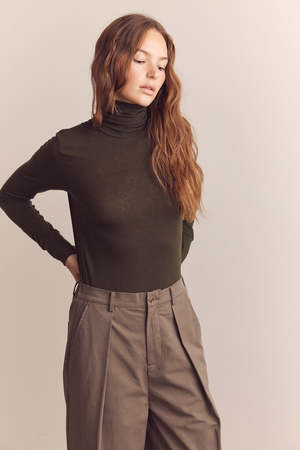 About Product Wool Blend Lightweight Turtle-Neck - This sweater is crafted from a blend of wool and other lightweight materials, offering a soft and comfortable feel with just the right amount of warmth. Designed with meticulous attention to detail, the turtle neck provides a classic and timeless touch, adding a touch of sophistication to your look. With its lightweight and breathable fabric, this knit sweater is perfect for layering during cooler seasons or wearing for a chic and cozy outfit. The wool blend ensures softness and durability, making this sweater a go-to option for long-lasting comfort and style. SIZE AND FIT Model size: 5' 9'' 30 1/2"-24 -34 1/2 wearing a size S Approximate measurements based on flat fit - S - LT: 13 3/4" Chest: 14 3/4" Sleeve LT: 24" - M - LT: 14 1/4" Chest: 15 3/4" Sleeve LT: 24 3/8" - L - LT: 14 1/2" Chest: 16 3/4" Sleeve LT: 24 3/4" WASHING INSTRUCTIONS: - Hand wash cold - Do not bleach - Dry flat - Warn iron if necessary - Professional Dry Cleaning if necessary