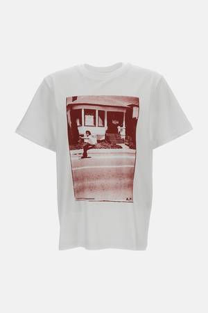 Men > Clothing > Topwear > T-Shirts Short-sleeved crew-neck cotton T-shirt. Front print. Comfortable fit. Ribbed collar. Color: white Composition: 100% Cotton.