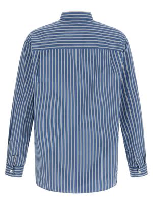 Men > Clothing > Shirts "Malo" shirt in striped cotton poplin featuring a chest pocket with logo2 embroidery, front button closure, long sleeves with buttoned cuffs and dropped shoulders, side slits, and a rounded hem. Composition: 100% cotton.