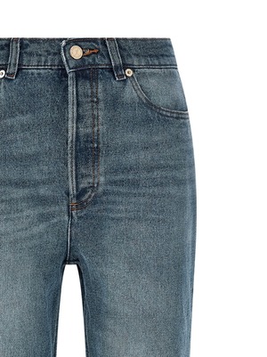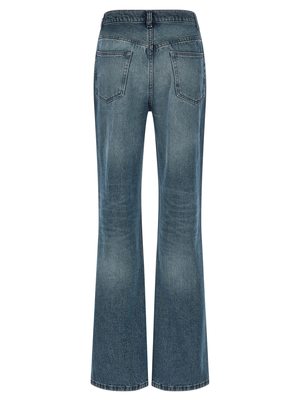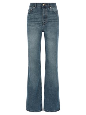 Women > Clothing > Jeans "Romy" stonewashed denim jeans with contrast stitching, high waist, flared leg, front button closure, five pockets. Composition: 100% cotton.