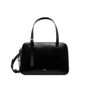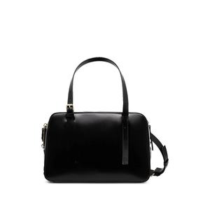 Women > Bags > Shoulder Bags Black shoulder bag with top handle, adjustable strap, zip fastening, and gold-tone hardware.