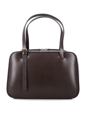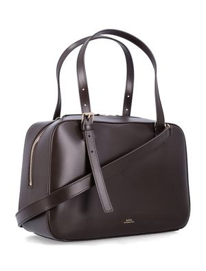 Women > Bags > Shoulder Bags The A.P.C. Virginie Box Bag combines refined elegance with everyday practicality. Crafted from smooth leather, it showcases a structured silhouette enhanced by gold-tone hardware and the signature front logo2. With two adjustable top handles, a removable shoulder strap, and functional internal pockets, it is a versatile design that adapts effortlessly from day to evening. Structured box bag in smooth leather - Two adjustable top handles - Two-way zip closure with leather puller - Removable and adjustable shoulder strap - Interior flat pockets for organization - Gold-tone logo2 stamped at front - Cotton lining for a refined finish Height: 18 cm Width: 27.5 cm Depth: 10 cm Composition: 100% cow leather.