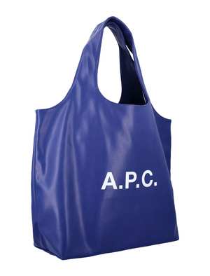 Ninon Tote Bag by A.P.C. Featuring large handles, a white A.P.C. logo2 at the front, and an internal flat pocket. Height: 50 cm, Width: 34 cm, Depth: 11 cm. Composition: 55% polyurethane, 40% polyester, 5% calcium carbonate.