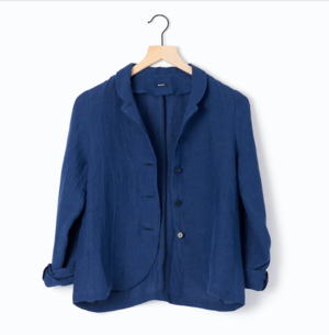 Cropped, fitted button-down blazer with peter pan collar and rounded hem. 100% hemp. Runs narrow & small. Made in Italy. US Sizing
