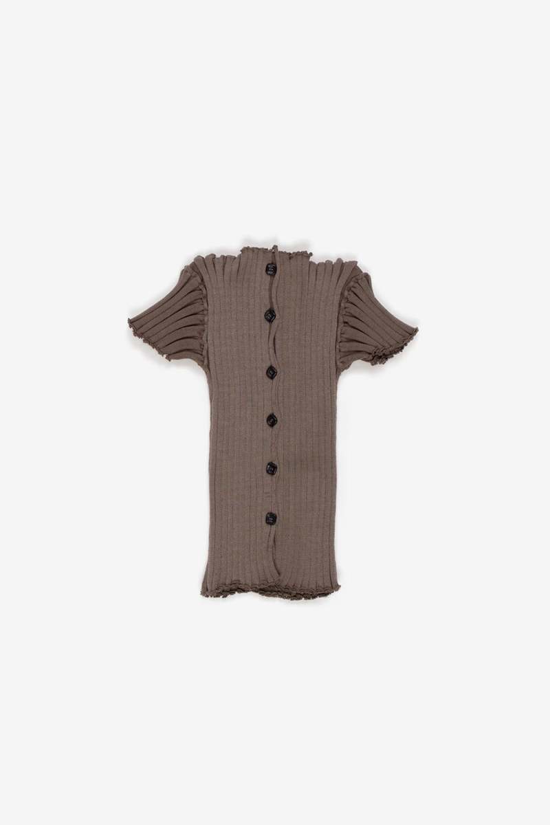 The Katrine Short Sleeve Cardigan by A. Roege Hove features a contemporary silhouette with short sleeves, perfect for layering or wearing on its own. Crafted from a blend of 58% cotton and 42% nylon for comfort and durability.