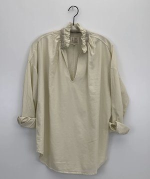- long sleeve blouse with split neck top with ruffle collar - 100% Cotton - single button cuff