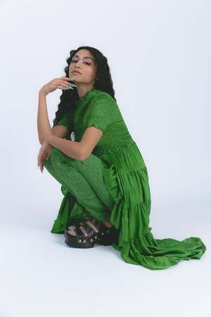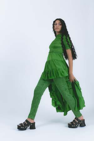 Our Smocked Leggings design, now in cupro (vegan silk) for a night out or layered for everyday with a sweater. All sizes have an interior drawstring to keep the pants in place. Pair it with a matching Smocked High-Low Dress for a show-stopping set. Available here in our 'Online Lime', a very desi-inspired green color. Also available in black exclusively at Shopbop.