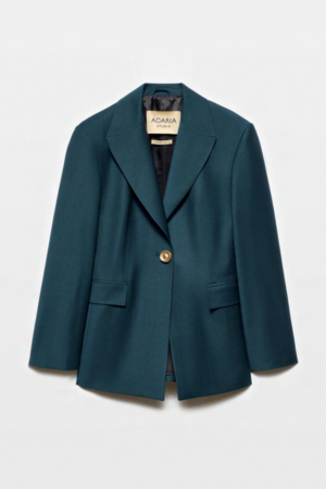 The Earth Blazer from Acaria Studio's Dark Romance collectsion draws inspiration from the mystery of deep forests, with dark reds and natural greens setting the tone. It combines strong tailoring with feminine details for a modern yet timeless aesthetic. Up-cycled wools, sustainable Tencel fabrics, and semi-vegetal leather reflect Acaria Studios commitment to responsible design. Composition: 86% Wool, 10% Polyamide, 4% Elastane; Lining: 100% Viscose.