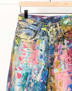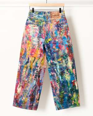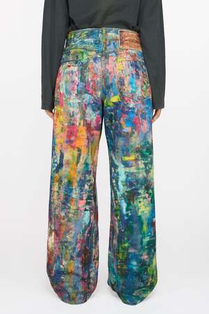 The Acne Studios 1981 jeans are cut to a baggy fit with a low waist, wide leg, and long length. - 5-Pocket construction - Non-stretch denim - Multicolor all-over brushstroke print - Low waist - Wide leg - Long length - Baggy fit Shell: 100% Organic cotton, Patch: 100% Cow leather. Ref: AK0905