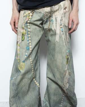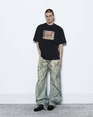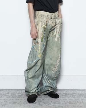 These pants have a relaxed, low waist fit with wide legs, designed with a seasonal print of colour belt chains on denim on cotton canvas. These baggy trousers have 5 pockets, ideal as a stand-out piece with any outfit variation. 100% Cotton. Made in Italy. FN-MN-TROU001129 Kobe is 60 (183cm) and is wearing a size 44.