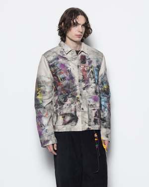 This jacket features Acne Studios' seasonal trompe l'oeil print throughout with a soft paint-brush overlay. Crafted with a regular fit at hip length, it includes one sleeve pocket and side pockets. - 100% Cotton. - Made in Italy. - Style No: FN-MN-OUTW001241 Model Kobe is 60 (183cm) and is wearing a size 46.