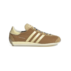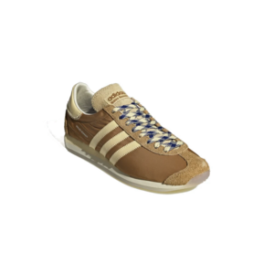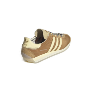 The Spring Summer 2022 collectsion from adidas Originals and Wales Bonner reimagines football apparel and shoes from the 1970s and 1980s. The collectsion offers elevated, luxury sportswear with a romantic connection to the past. The Country Shoes come together in mesa, easy yellow and mystery ink and have a nylon upper. Lined with luxurious satin, they are accented with suede and leather details alongside contrast decostitching. Supplementary laces are provided in crochet a signature of the Wales Bonner house. - Lace closure - Nylon, suede and leather upper - Satin lining - Synthetic leather sockliner - Rubber outsole - Wales Bonner logo2