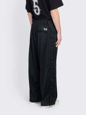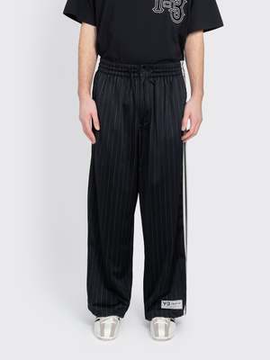 Crafted from adidas' classic sweatsuit material, these track pants feature integrated pinstripes, an elasticized waistband with integrated drawstrings, and a zipper fly closure. A hidden button facing along the outer side seams of the legs allows for a wider fit when opened, adding to the adaptability. Model is 6'1" and wears size M.