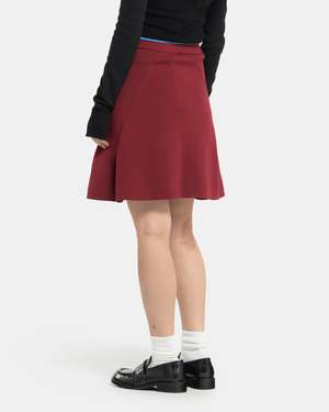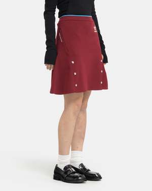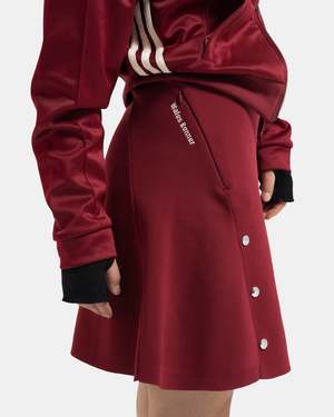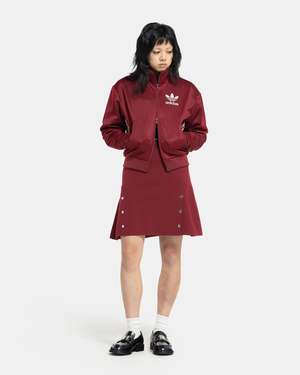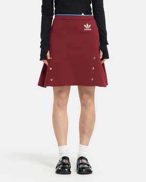 Adidas x Wales Bonner Knit Skirt in Collegiate Burgundy The Knit Skirt is made of a recycled polyester piqu and features an above-knee, A-line shape. The skirt is marked by a bline edge at the elasticized waist, and contrast branding at the front and side. Snap hardware embellishments are aligned with the side zip pockets. - 100% Polyester. - Made in China. - Machine wash cold, line dry. - JL9588. Kaz is 5'6 (168cm) and is wearing a size XS.