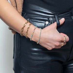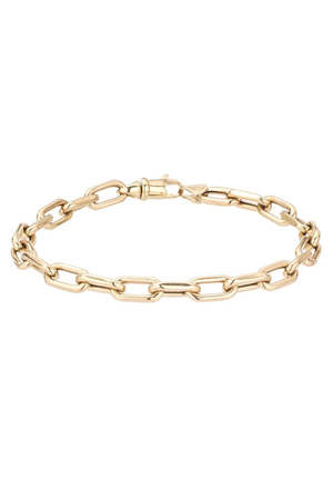 Metal: 14K Yellow Gold Measurements: 5.3mm wide x 10mm length gauge links; 7" length Weight: 6.32 g A bracelet that you will wear and have forever. Handmade in Italy and crafted from lightweight, hollow 14K gold links, this bracelet is perfect for everyday wear and looks great layered with other pieces. This bracelet is a heavier gauge than the 4mm.
