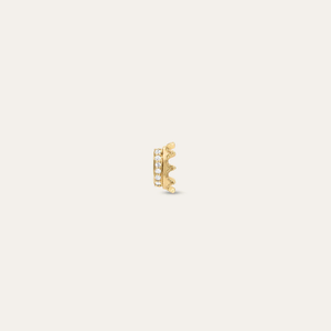 The Pave Crown Mini Bead is a scaled-down version of the bestselling Crown Big Bead, handcrafted in 9k yellow gold and set with pav diamonds. The sculptural crown shape features milgrain edges and brilliant diamond accents in a petite silhouette. - Metal: 9k Yellow Gold - Measurement: Mini Bead measures around 7.2 mm x 4.8 mm with an opening of 4 mm x 2 mm. - Total Diamond Carat Weight: 0.04 CT