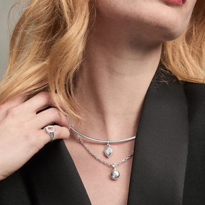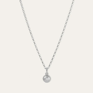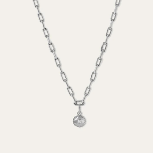 Our Groovy Diamond Flower Hinged Charm in sterling silver adds a beautiful silhouette to our most iconic signatures. With fluted petal detailing and a bezel-set lab-grown diamond at the center, its made to catch lightand compliments. Adina loves it worn slightly off-center on a 16" 5.3mm Italian chain or paired with the Good Luck Clover Charm for the perfect Groovy Charm story.