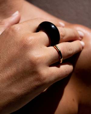 This handmade piece is made out of natural horn with an 18 karat responsible gold-vermeil with a recycled brass core band on the inside of the ring. This ring contains: - natural horn - 18 karat responsible gold plating - with a recycled brass core - band 1mm thickness - High polish - To find your RING SIZE check the size chart