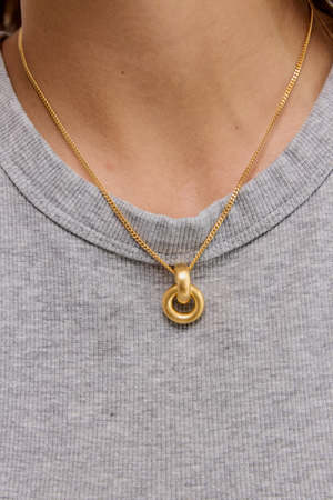 A bold statement piece, this elegant double donut pendant has a playful movement. The DOUBLE DONUT is made in 18 karat gold-plated recycled brass, with either a high or satin polish. Available in 3 sizes: Small 17mm, Medium 22mm, and Large 28mm. This listing is for the Medium size. Add a chain of your preference to the DOUBLE DONUT: a basic curb, big curb, twisted chain, or natural leather cord. Materials & information: - 18 karat ethical gold-plated recycled brass - Available in high and satin polish - Available in three sizes: Large, Medium, and Small - Add on a necklace from our collectsion