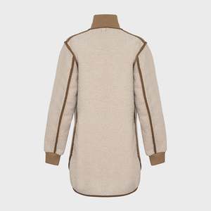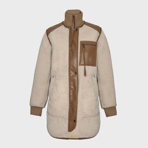 description: Audrey is an a-line coat in faux shearling and faux leather. It is one of our best selling coats and sure to become your go-to jacket. Featuring a high neck rib, rib cuffs, storm placket with snaps and concealed zipper. Step out with a bit of flare by unzipping the sides. fabric: Faux shearling/Faux Leather measurements: Fit is true to size.
