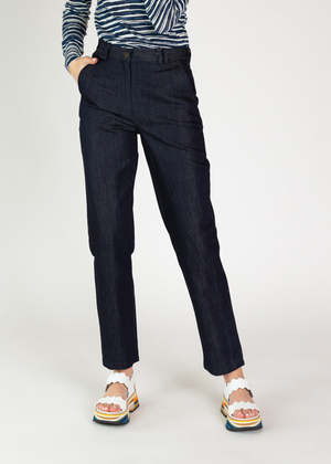 Aequamente's Denim Pant is crafted of cotton and linen features a flat front with a zip and button closure and a tapered leg. Details - Flat front. Zip and button closure. - Straight tapered leg. Belt loops. - Side hip pockets. Rear pockets. - Wash cool. Dry flat. - Made in Italy. Color denim. 63% cotton, 37% linen. Model is wearing a size 36. She is 5'9.5" with a 25.5" waist.