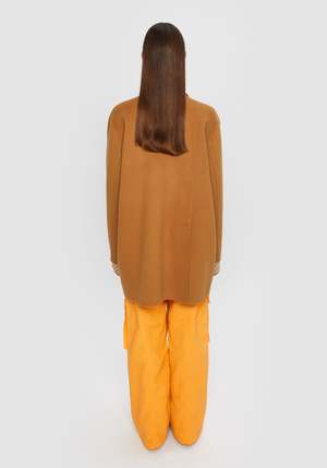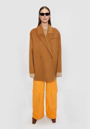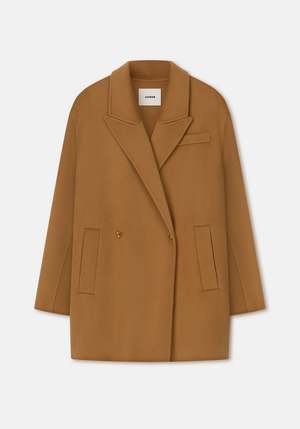 AERON's CAVENDISH jacket radiates luxuriousness, crafted of a dreamy wool, silk, and cashmere blend. You'll stay nice and cozy in this elegant design, thanks to its double layers. It has a stylish A-motif double button closure, pockets for all your bits and bobs, and chic pointed smoking lapels. Plus, it has asymmetric slits on the back. Talk about a show-stopper! - Designed for a loose fit, in case you do not prefer an oversized fit take one size smaller than normal. - 75% Super fine wool 10% Cashmere 15% Silk - Do not wash, Do not bleach, Do not tumble dry, Iron low temperature, Suitable for dry cleaning, Suitable for professional wet cleaning