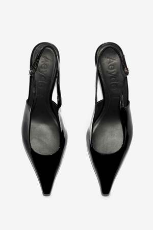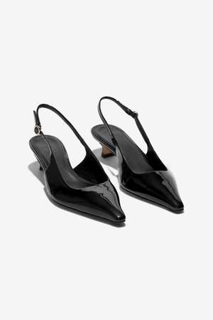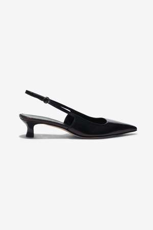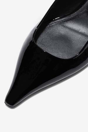 35 mm kitten heel pointy toe everyday pump. Composition: 100% Patent Calf Leather.