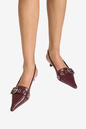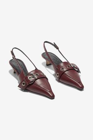 The Davina Heels by aeyd are a women's footwear style in a Port (red) colorway.