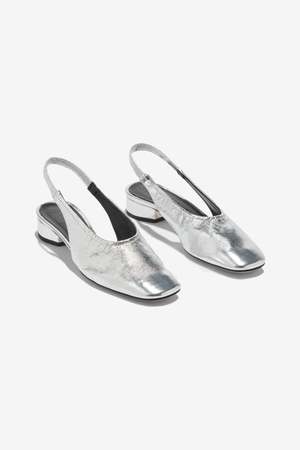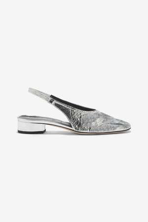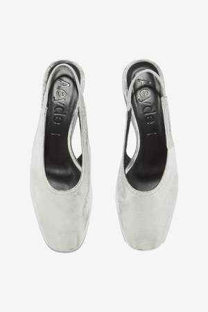 The Dua by aeyd is a women's mule in a silver color. Style code: A11-FL-GLVR25RO150-SS25-920-068. Color: Silver. Made in Italy.