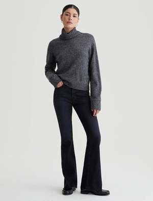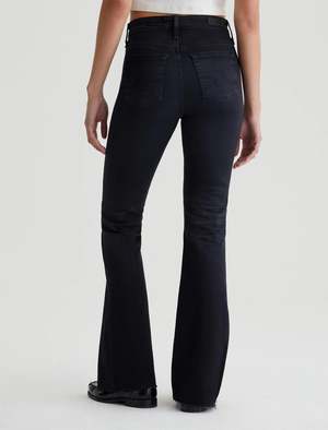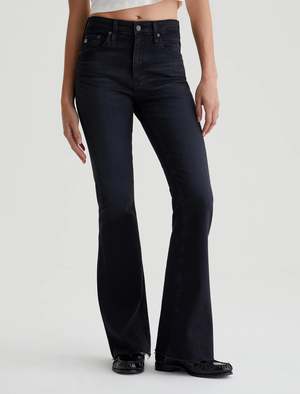 The Farrah Boot is a high-rise bootcut jean with an AG-ed black wash and raw hems. Crafted from 10 oz. Ashen Stretch Denim, it's faded and whiskered to emulate 4 years of natural wear. The pair sits high on the waist and has a skinny fit through the legs before opening into a subtly flared shape. - Ashen Stretch Denim. - 10 Oz. 92% Cotton, 6% Eme, 2% Elastane