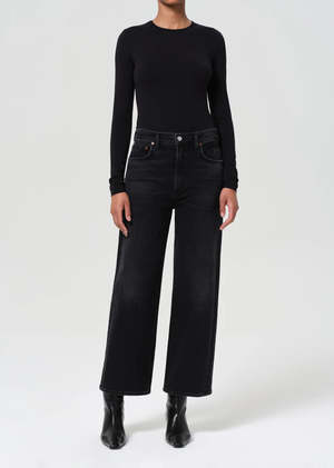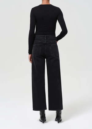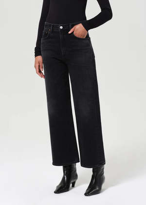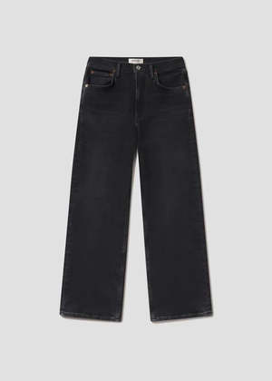 AGOLDE's Ren jeans from the Weightless Collection offer the perfect blend of comfort and style. Made from regenerative cotton, they feature a high-rise waist and cropped wide legs for a relaxed yet flattering silhouette. The lightweight fabric ensures all-day comfort, making them ideal for casual wear. Pair them with a half-tucked tee for a cool, effortless look. This fit is true to size. Looks Like: Medium marbled indigo denim Feels Like: Non stretch, weightless denim washed down for a soft to the touch feel Closure: Button Fly Rise: 12 1/4" Inseam: 27 1/2" Leg Opening: 19 1/2" Model is 5'10" and is wearing a Size 27 Fabric: 99% Regenerative Cotton, 1% Elastane Care Instructions: Machine wash cold inside out with like colors. Do not bleach. Tumble dry low. Made in Turkey with imported materials.