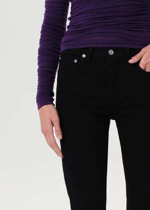 The Ingram Split Skinny is a high-rise, full-length skinny jean in clean, saturated black denim. Crafted from comfort-stretch, lightweight regenerative cotton, it has a super-soft hand that holds its shape while offering all-day wearability. True to size, this sleek silhouette is perfect for pairing with fitted tops or oversized knits for a modern, versatile look.