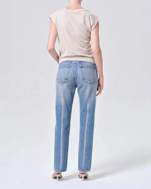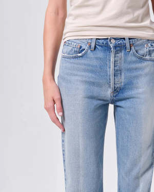 The Lana Jeans in Brink by AGOLDE are their original relaxed straight, featuring an easy, vintage-inspired leg with a subtle creased finish, crafted in a rigid, non-stretch cotton denim. - Material: 100% Regenerative Cotton - Closure: Button fly - Rise: 11 1/4" - Inseam: 30" - Leg opening: 16" - Fit: True to size - Style #: A140D-1371-BNK - Made in Turkey Model is 5'10" and is wearing a size 27.