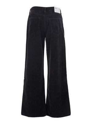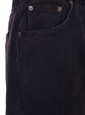 Brown corduroy pants featuring belt loops, front button and zip closure, wide leg, straight hem, five-pocket design, and a relaxed fit. Composition: 75% Cotton, 25% Lyocell.