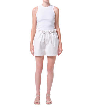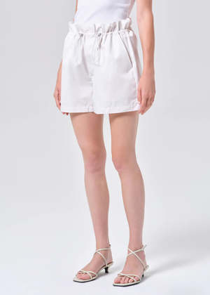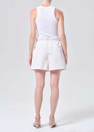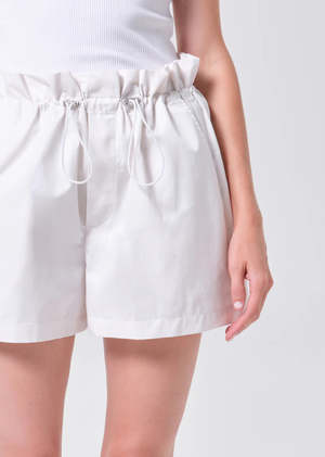The Lydia Short is designed with an easy, relaxed shape and a softly structured waistband featuring an adjustable drawcord closure. Rendered in a creamy off-white chalk tone, it delivers a crisp, modern feel that pairs effortlessly with warm-weather staples. Crafted from lightweight, breathable fabric, it is cool to the touch and moves with ease, making it an ideal piece for everyday comfort. This fit is true to size. Looks Like: Creamy off white short with drawcord closure Feels Like: Lightweight breathable cool to the touch fabric Closure: Drawstring Rise: 14" Inseam: 3" Leg Opening: 31" Model is 5'10" and is wearing a Size 27 Fabric: 55% Cotton, 45% Polyester Care Instructions: Machine wash cold inside out with like colors. Do not bleach. Tumble dry low.