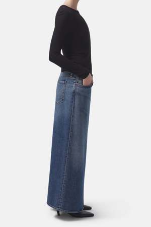 - Swing - 80% Cotton 20% Recycled Cotton - Timeless and forever flattering - Crafted in our new Weightless denim, Leif features an intentional front slit - A flattering mid-waist, and hitting right above the ankle - This maxi is the classic wear-with-everything piece that can be dressed up with heeled boots or dressed down with sporty sneakers for a more casual look - This style is meant to be worn low-slung on the hips - For a closer fit and if preferred to wear higher on the waist, we recommend sizing down - Looks Like: Medium indigo with subtle fading and soft whiskering, finished hem with front slit - Feels Like: Weightless, non-stretch recycled cotton blend that gets softer with each wear - Closure: Button Fly - Length: 38 1/4" - Hip: 41" - Sweep: 43" - The model is 5'10" and is wearing a Size 27 - Machine wash cold inside out with like colors - Do not bleach - Tumble dry low - Made in the USA - Style #: A3047-1555 Mpn A3047-1555 Sku AGDWFW23-03