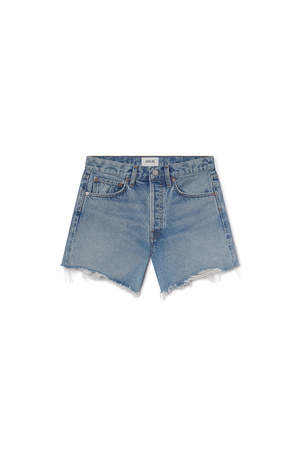 The Parker Long Shorts by AGOLDE are long jean shorts in a light vintage Community indigo wash with a cut hem. They look like the perfect vintage fit but are tailored to feel as if they were made just for you. With a little added length, the Parker Long is the ultimate classic cut-off. It hugs comfortably at the waist with a roomier fit through the hem and an elongated inseam. Style with a cool tee or a sleek bodysuit. Button fly. Non-stretch denim, washed down for an authentic vintage look and soft feel. 100% regenerative cotton. Rise 11 1/4". Inseam 4 1/2". Leg opening 24 1/2". Made in Turkey with imported materials. Style code: A9010B-1141.