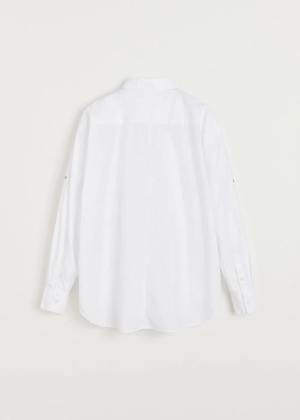 A timeless shirt, made from the finest 100% organic cotton poplin. Designed with a relaxed and voluminous fit, featuring a detailed curved and slightly lowered back hem, classic cuffs, and a button tab on the sleeves, allowing the shirt to be easily worn with rolled-up sleeves.