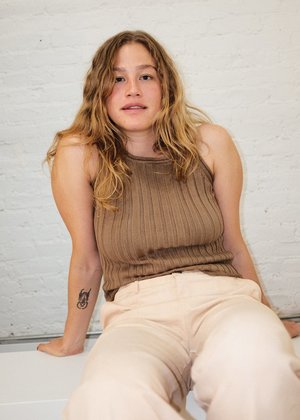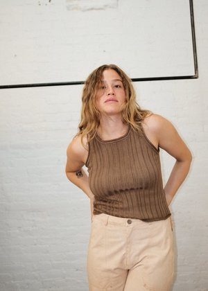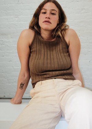 Racer back cut, but wide enough to offer enough bra-strap coverage. Because there are no nylon fibers, this tank was knitted 1" smaller to retain its shape after wear. This top is botanically dyed with walnut leaves in Cusco, Peru by our partners, Pichinku. About our botanical dye partner, Pichinku- Pichinku Fibers is a cooperatively owned natural dye studio in Cusco, Peru that is run by Quechua women who grew up practicing their traditional crafts. This small team works with 100% natural dyes that they source from the mountains surrounding Cusco. Pichinku uses culturally-important dye techniques to garment dye part of our Elevated Basics Collection knits by hand. To learn more you can visit their website at - www.pichinkufibers.com Brown 100% organic cotton Machine wash delicate with like colors and Lay flat to dry. Knitted in Peru Size and Fit View Measurements Fits true to size, it will stretch out 1". If in-between sizes size up. Natalie is 5'10" and wearing a US XS/S. Her measurements are 34C, 29" waist