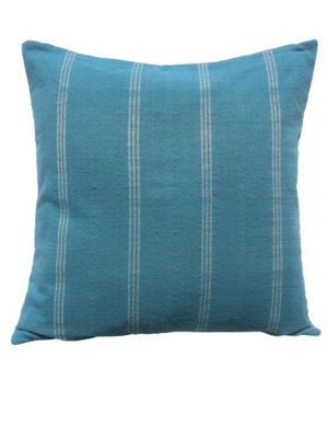 A handwoven pillow cover crafted from soft indigo wool. This piece features subtle shell stripes and is part of the Desert Hues Collection. It is designed to coordinate with various bedspreads and other pillows within the same collectsion. The cover is dry clean only and was handmade in India. Measures 24" x 24" for a substantial accent. Constructed from handspun, handwoven wool for natural texture. Features distinct shell stripes for visual interest. Handmade in India, reflecting traditional craftsmanship.