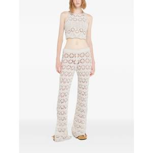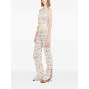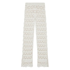 Women > Clothing > Pants & Shorts > Pants White pants featuring an elasticated waistband, scalloped hem, side slits, and a floral pattern.