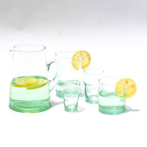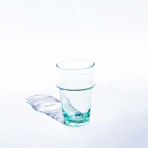 The Beldi glass is a traditional icon of Moroccan tableware, originally intended for serving tea. Available in three sizes for various uses, from water to liquor. Each piece is mouth blown from 100% recycled glass, resulting in natural variations and minor imperfections that highlight its uniqueness. Made in Morocco.