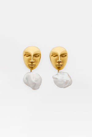Pair of earrings with a face shape and irregular hanging pearl Color: Silver / Gold Material: - Brass alloy with silver / gold veneer with baroque pearl - Measures: Length 4.6 cm approx., width 2.2 cm approx.