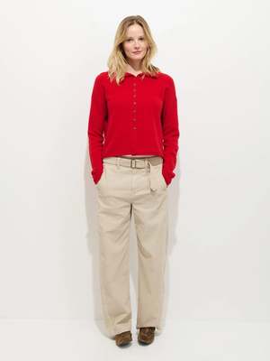 A high-rise pant with a slightly curved leg, inspired by the 9th Street artistsa group of independent women artists in the 1950s. - 100% Cotton Cord - Details: Self-belt, flat felled seams, unique pigment-dyed fabric. - Model is 5'10" wearing a size 4 - Size 4 measures 30.75" around the waist and 40" around the hip. Front rise measures 11.25", inseam measures 30".