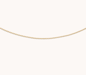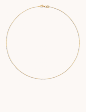 This 18k gold filled 1mm diamond cut ball chain necklace features a lobster clasp closure. It is great for wearing on its own or layering with other necklaces or adding a charm for a personalized look. Length: 16" Please see size chart image for length reference.