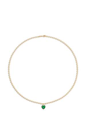 This 18k gold filled 3mm ball chain necklace features a vermeil yellow imitation emerald heart pendant with lobster clasp closure. It is great for wearing on its own or layered with other necklaces to create a personalized look. Please note: This pendant is gold plated. It should not be worn in water or during workouts. 18k Gold Filled Gold filled jewelry has a much thicker layer of gold wrapping around its base metal than gold-plated jewelry. This thicker layer makes the jewelry more durable and able to withstand daily wear and tear. We recommend keeping your gold filled jewelry away from oils, perfumes, or other chemical substances that may cause them to tarnish. Length: 18"