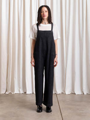 Thick denim overalls with straight leg, patch pockets, adjustable straps, and front button closure. Pre-washed and pre-shrunk. Slightly oversized you might want to size down depending on how you want them to fit. CONTENT + CARE: 100% Cotton Denim Machine wash, tumble dry low
