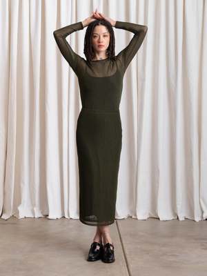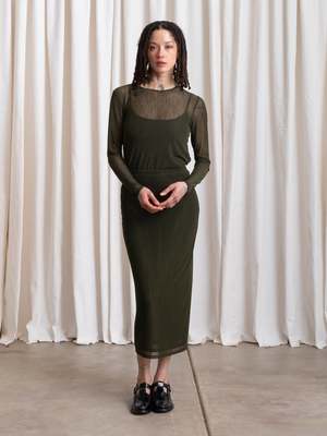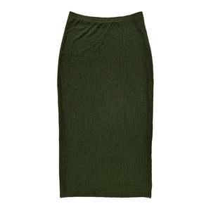 A pull-on, easy pencil skirt with elastic waist in double layered mesh. Made by Ali Golden. CONTENT & CARE: 100% Recycled Polyester Mesh MEASUREMENTS (laying flat): XS - Waist: 12.5", Hip: 16", Length: 32" S - Waist: 13.25", Hip: 17", Length: 32" M - Waist: 14", Hip: 18", Length: 32.5" L - Waist: 15.5", Hip: 19", Length: 33"