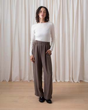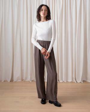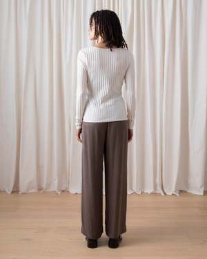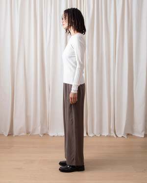 Ribbed lightweight long sleeve shirt is fitted with high neck in a soft Tencel/Cashmere yarn. CONTENT & CARE: 90% Tencel Lyocell, 10% Cashmere Dry clean -or- wash cold and lay flat to dry